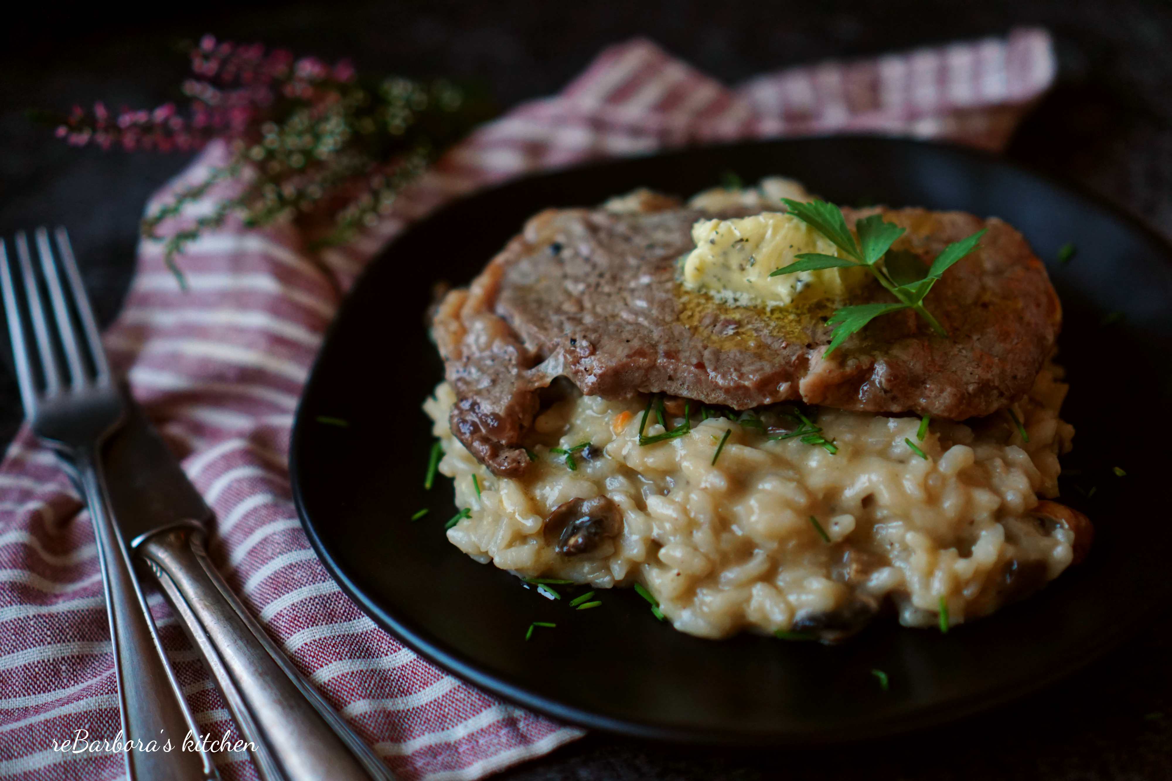 Risotto s houbami a rib eye steak s bylinkovým máslem | reBarbora's kitchen