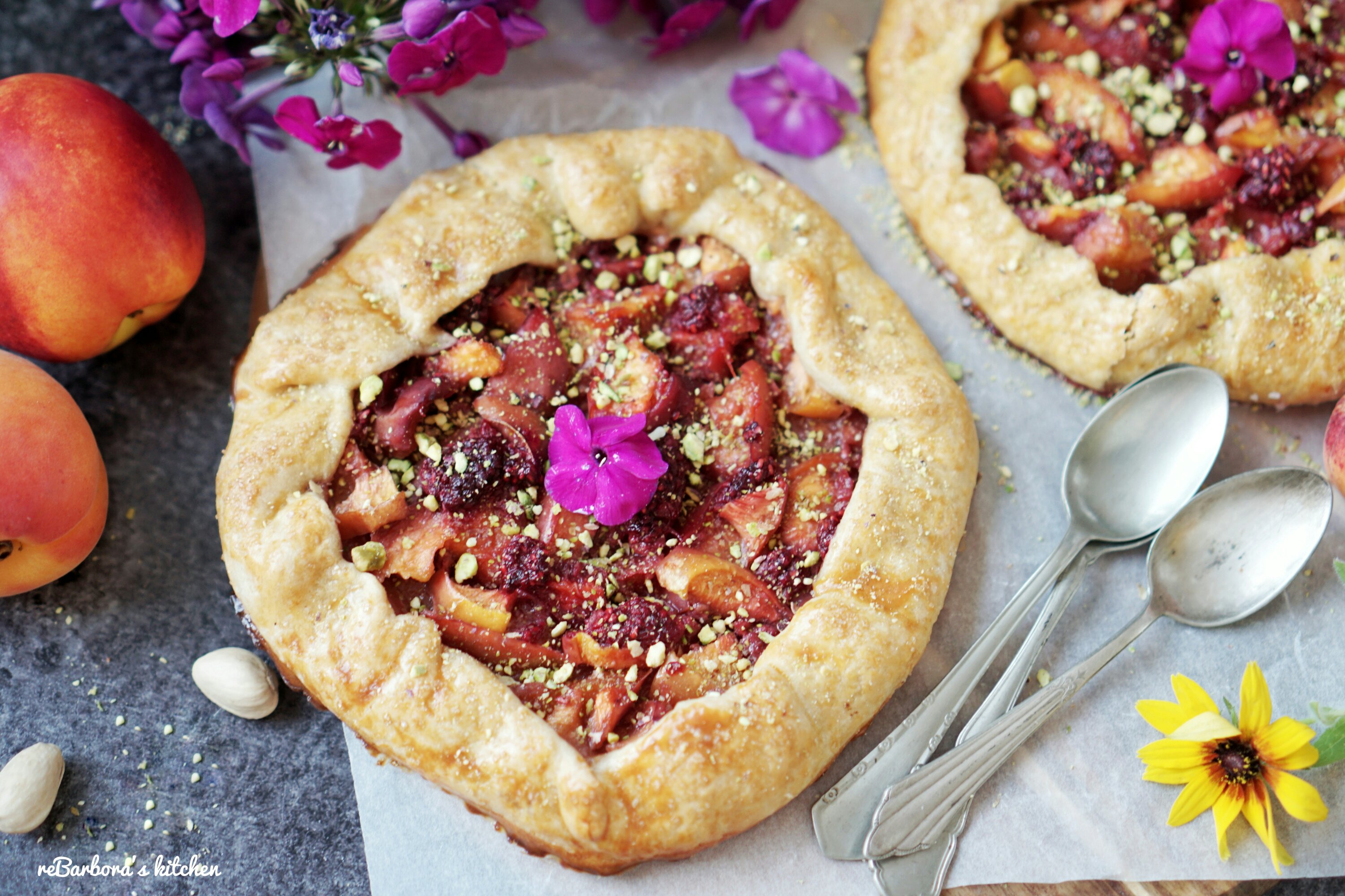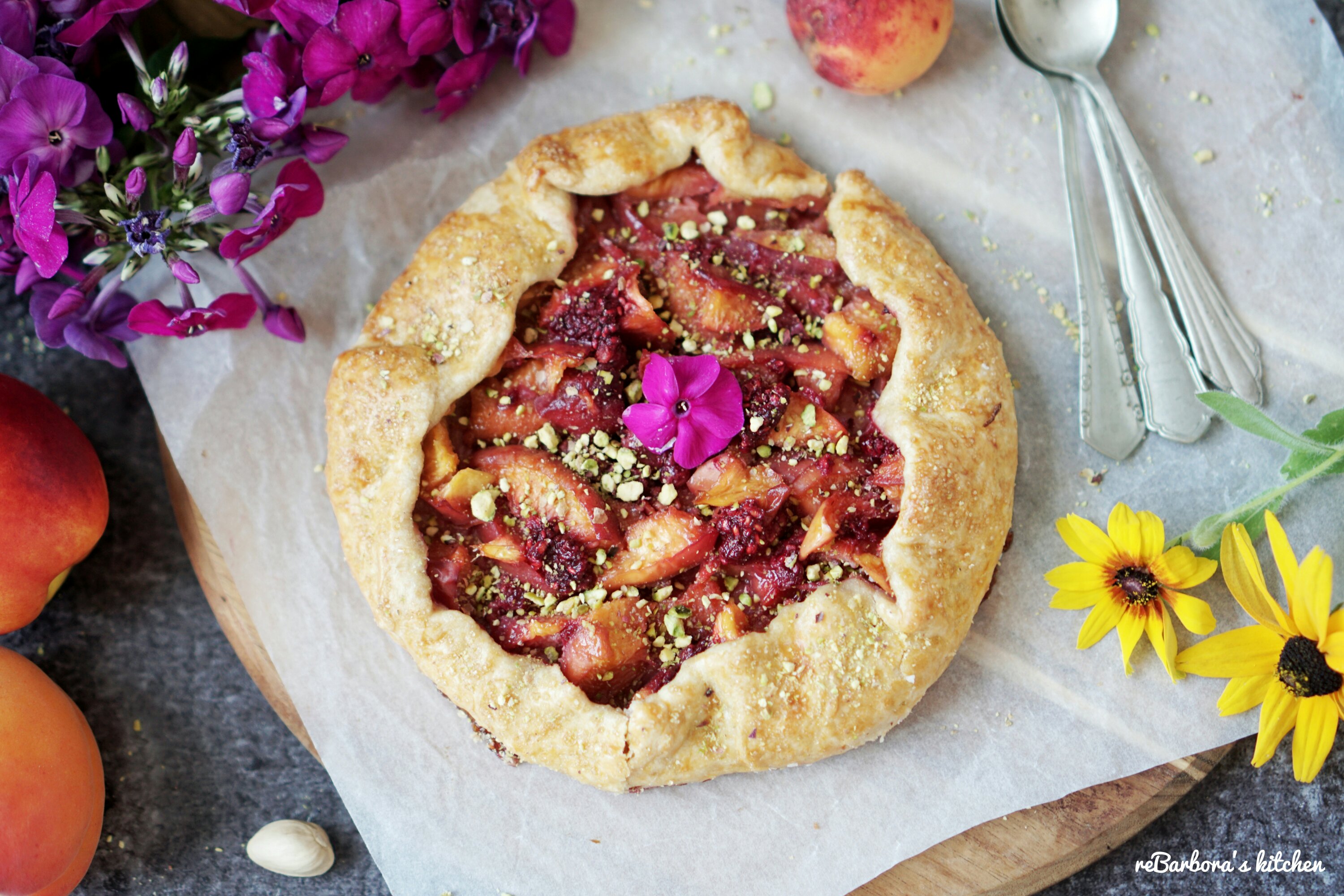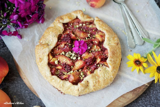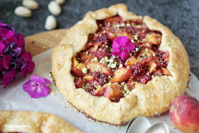 Křehké těsto, plné šťavnatého ovoce, posypané hnědým cukrem a pistáciemi.. zní to lákavě, že? Galetky jsou u nás ve velké oblibě s jakoukoliv náplní a tato broskvová měla úspěch velký, věřím, že zachutná i vám ❤