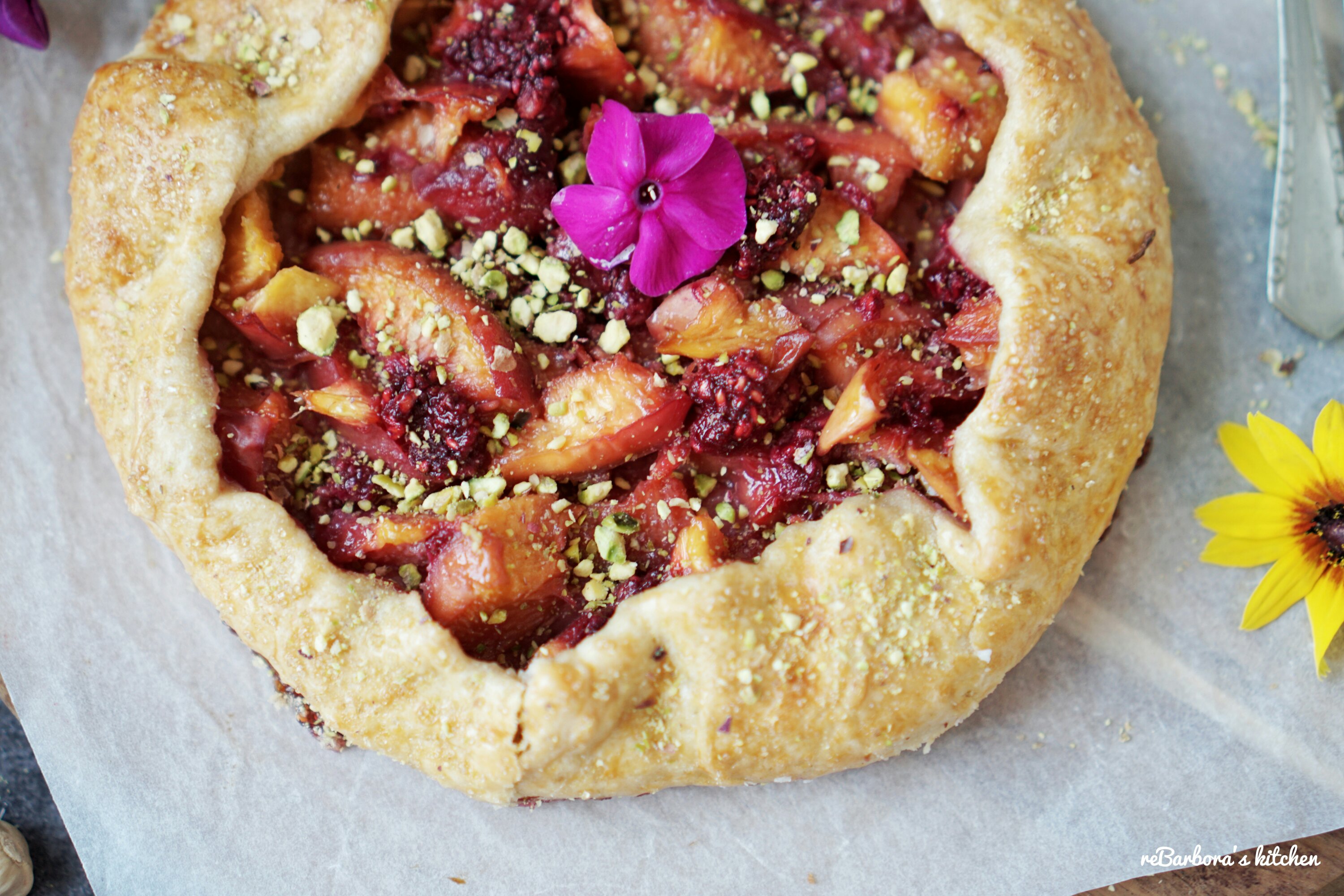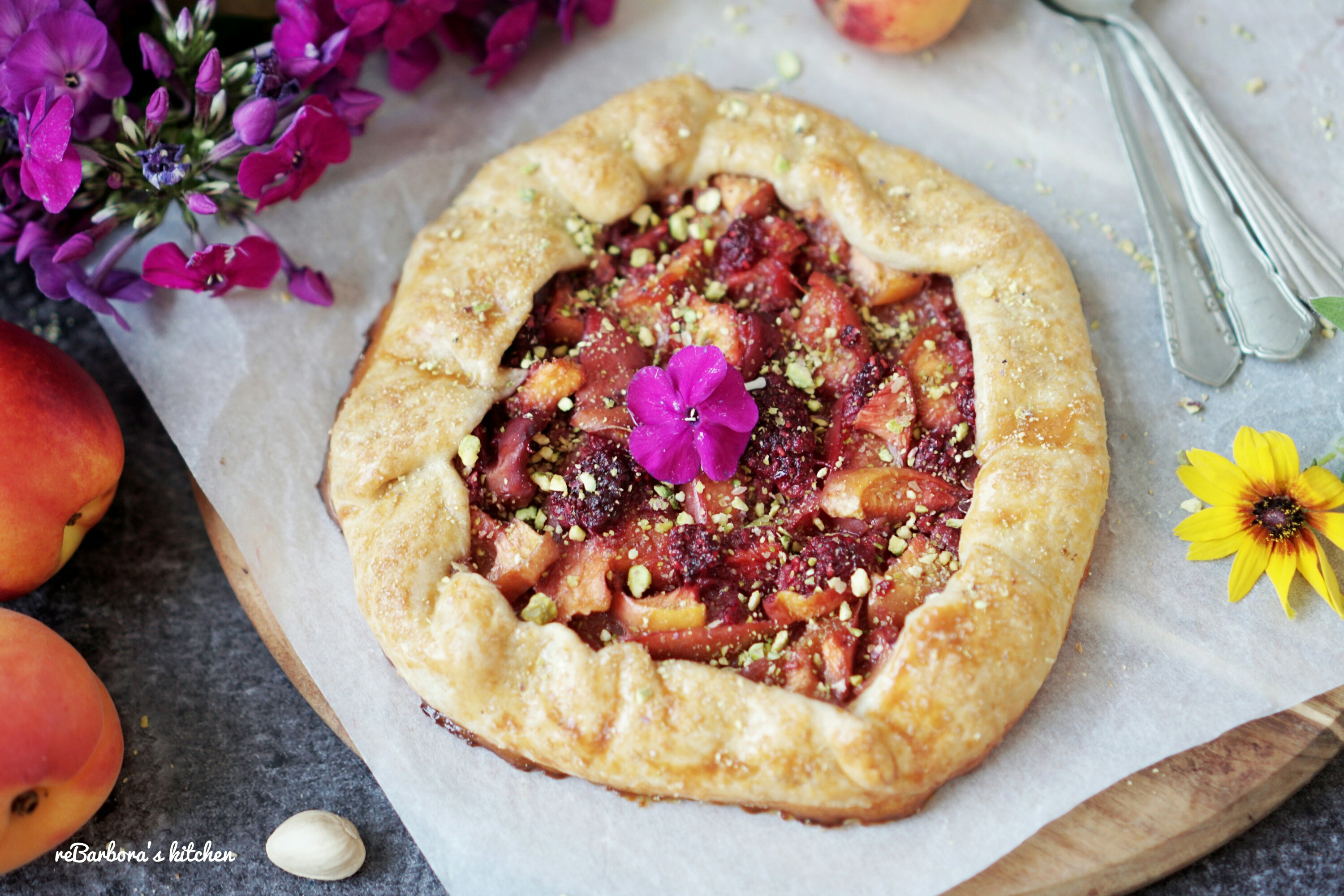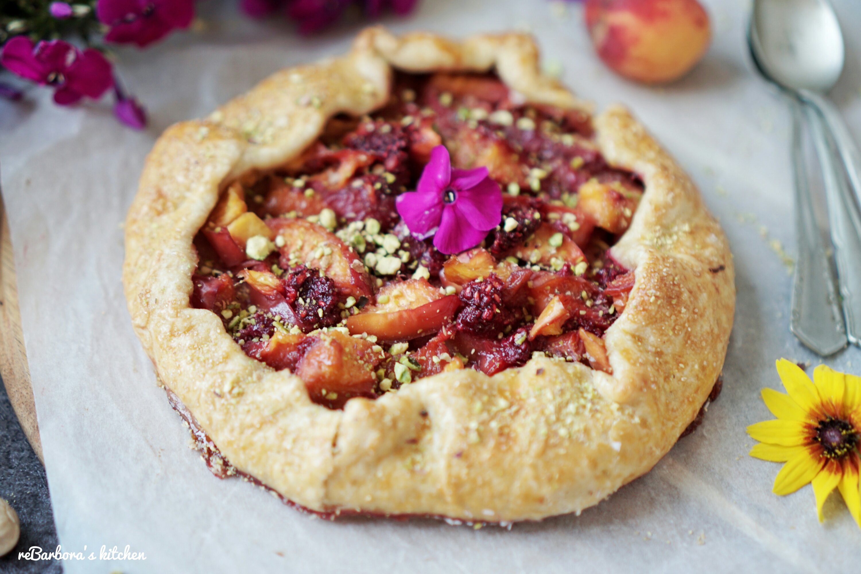 Křehké těsto, plné šťavnatého ovoce, posypané hnědým cukrem a pistáciemi.. zní to lákavě, že? Galetky jsou u nás ve velké oblibě s jakoukoliv náplní a tato broskvová měla úspěch velký, věřím, že zachutná i vám ❤