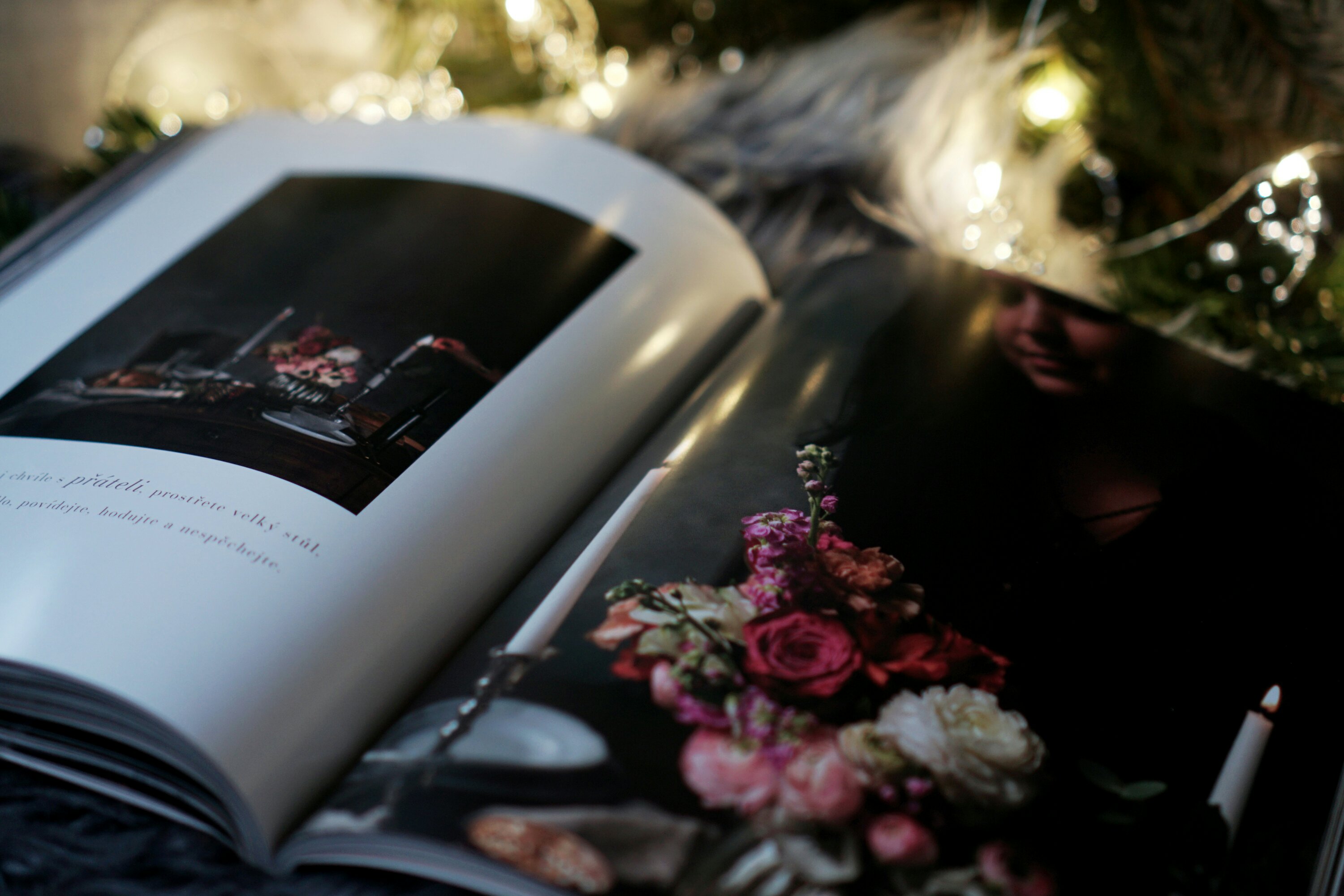 svíčkami a skvělé jídlo na něm..”