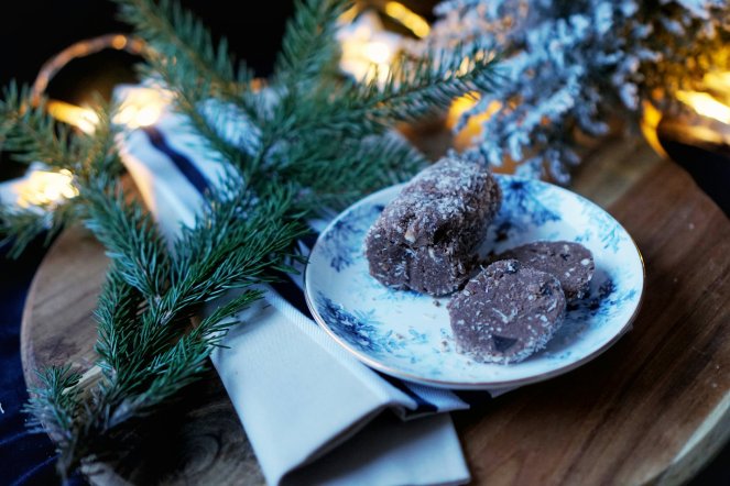 Tohle cukroví mám spojené s dětstvím, patřilo mezi mé oblíbené druhy, které moje maminka dělala. Já ho dnes dělám také, ale většinou tak, že do něj vrazím všechno, co potřebuju z pečení upotřebit, ať je to zbytek cukru z obalování, kandované ovoce, nebo třeba rozlámané kousky cukroví, na to čoko salám skvělý, takže se určitě nebojte s receptem experimentovat :).