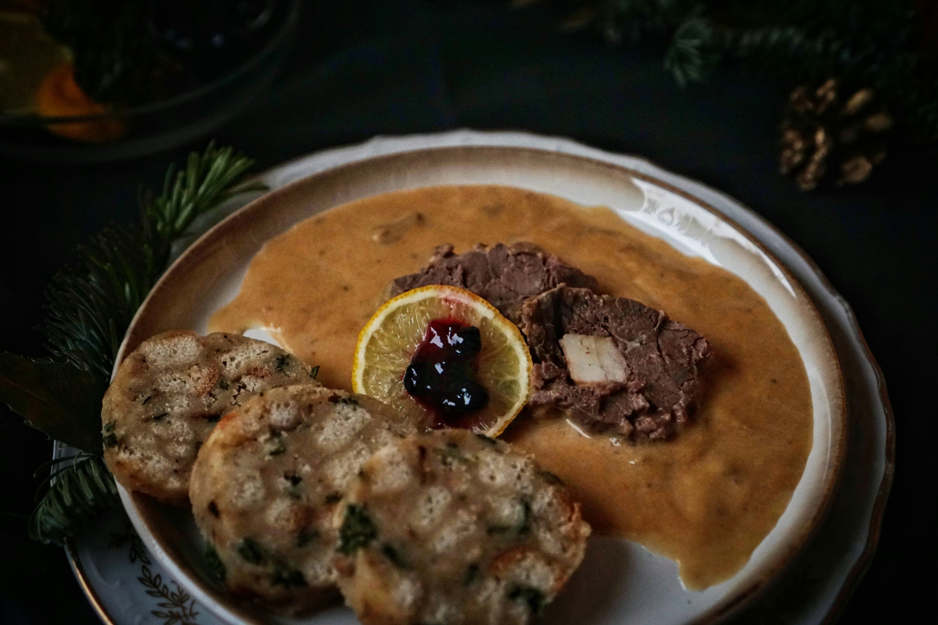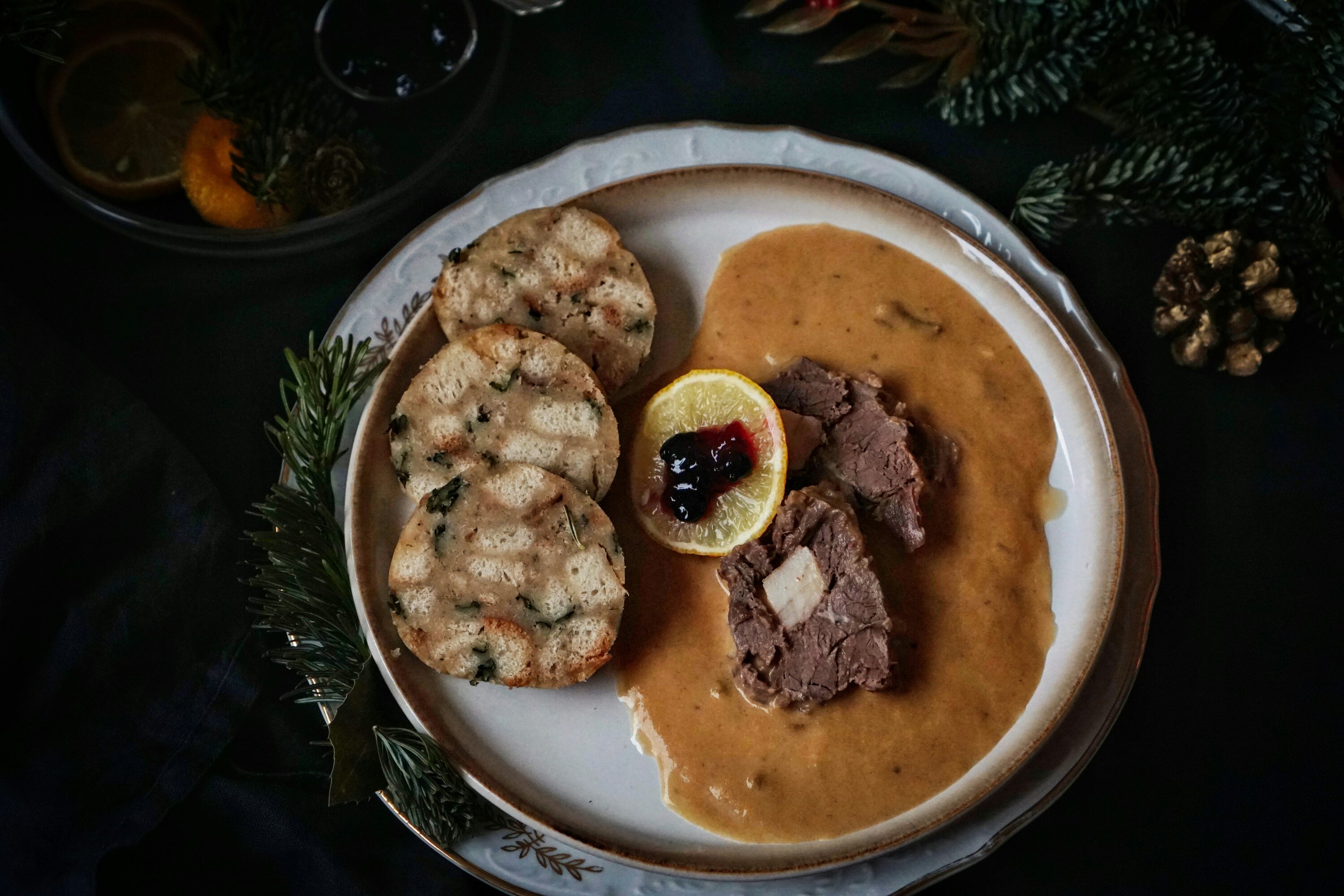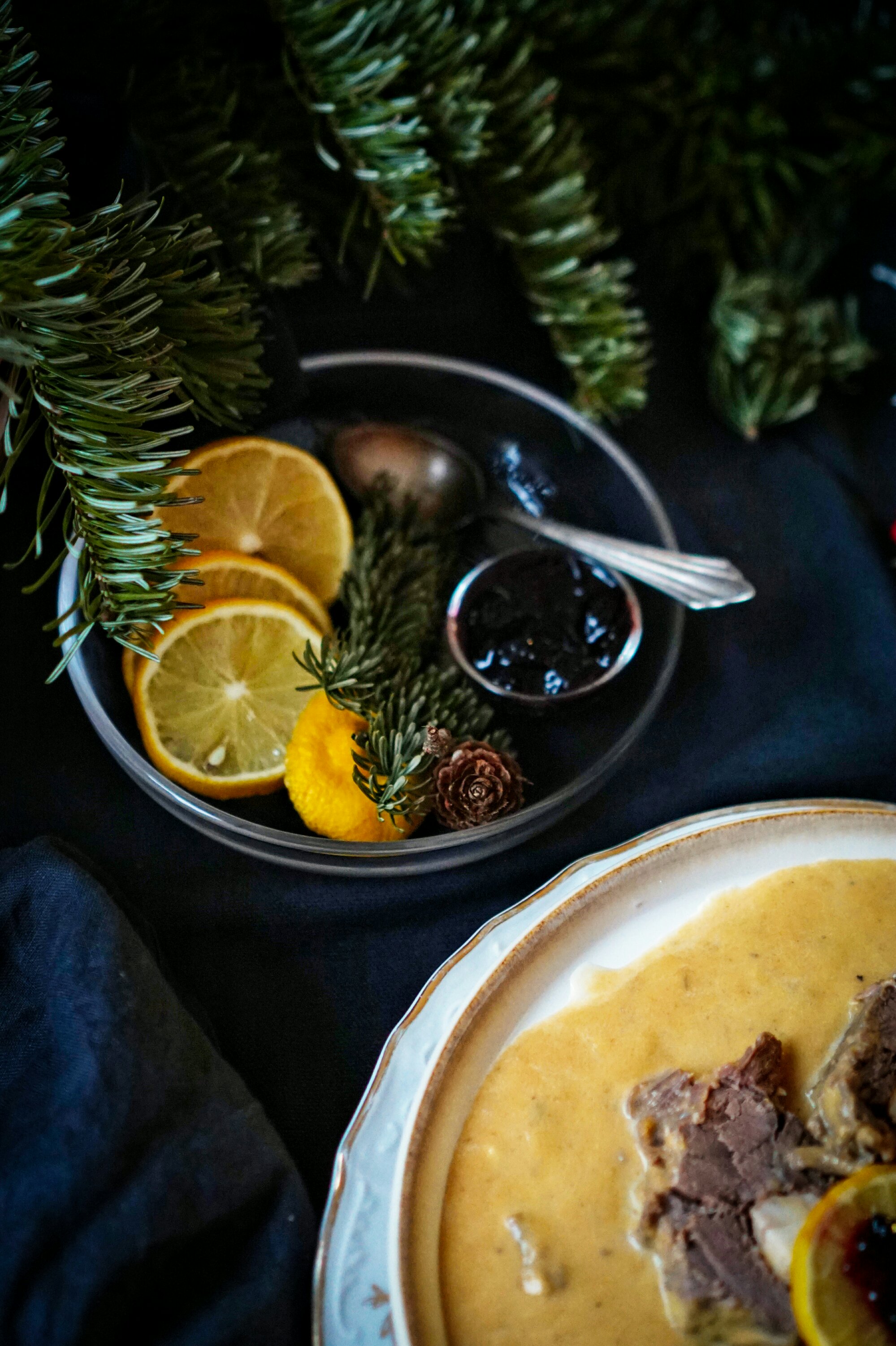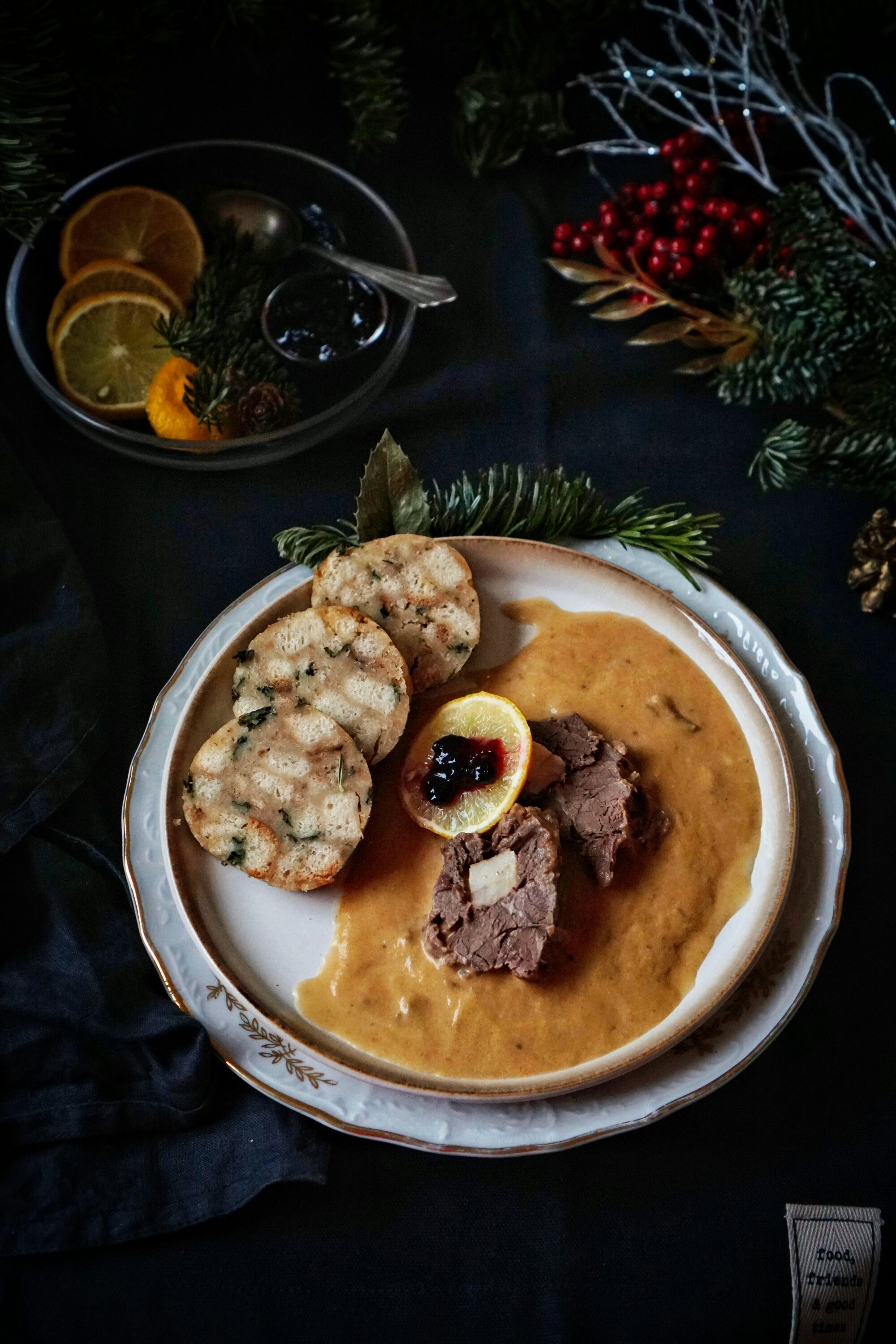 Ke svíčkové se často podává citron a brusinky, nebo i šlehačka. U nás se takto jí svíčková zcela minimálně. Tentokrát jsem ji tak ale servírovala, citron a brusinky jsem naservírovala na krásný nový skleněný talířek/misku, který mi nadělil Ježíšek z Bonami. Stejně tak svíčkovou jsem dala na momentálně můj oblíbený talíř od Ježíška z Bonami a užili jsme si krásně povánoční čas.