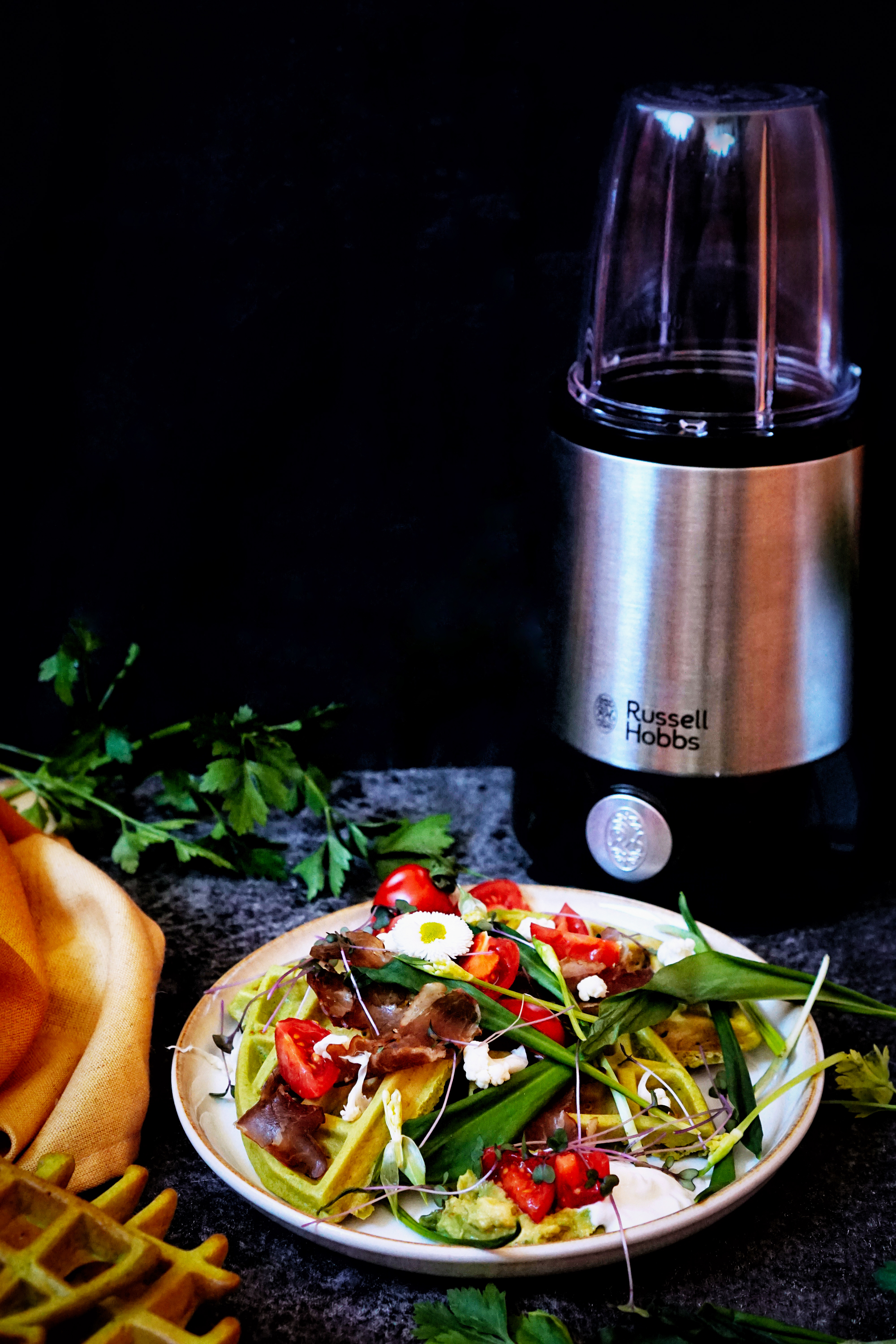 Na přípravu jsem v rámci spolupráce s Russell hobbs využila hned několik jejich přístrojů – Nutri boost mi usnadnil přípravu těsta, přístroj na sladké pečivo vafle upekl (pár jsem jich nechala upéct víc do křupava, viz. samotné na prkýnku) a krásné bronzové mlýnky dodaly tu správnou zlatou, nebo spíše bronzovou, tečku 🧡.