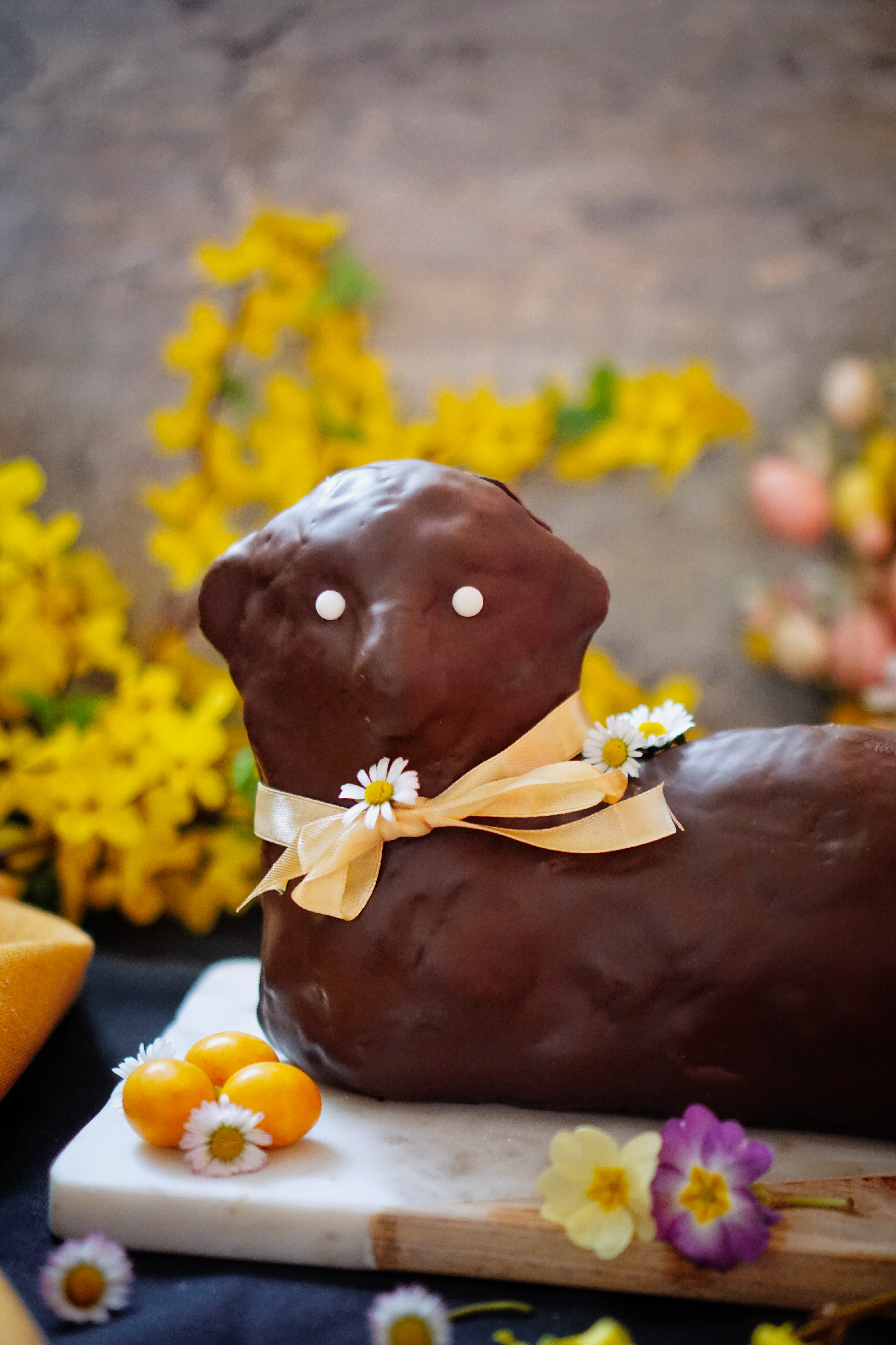 Na polevu rozehřejte čokoládu na vodní lázni a poté do ní vmíchejte kokosový olej. Beránka rovnoměrně polijte a dejte do ledničky čokoládu zatuhnout.