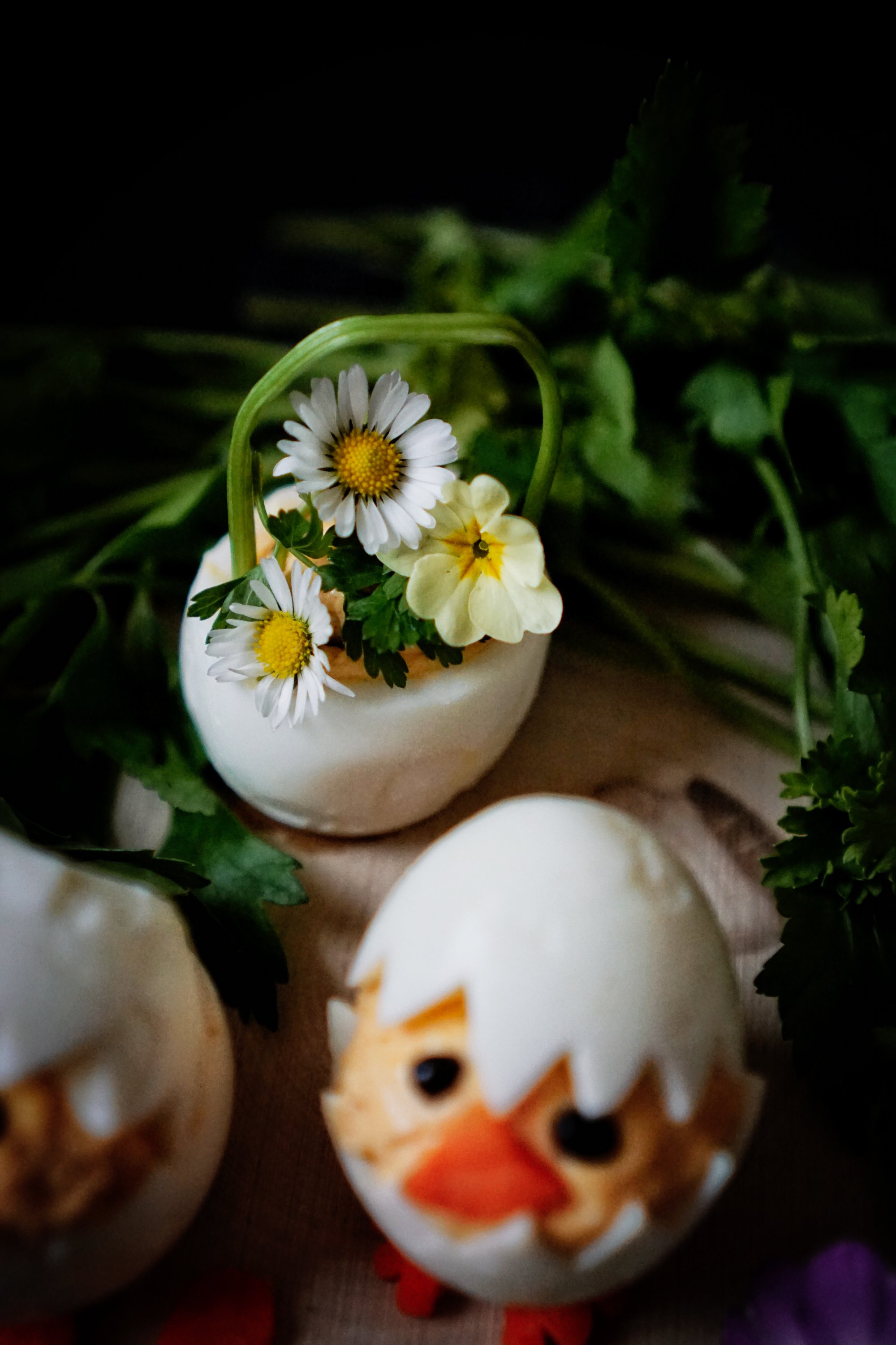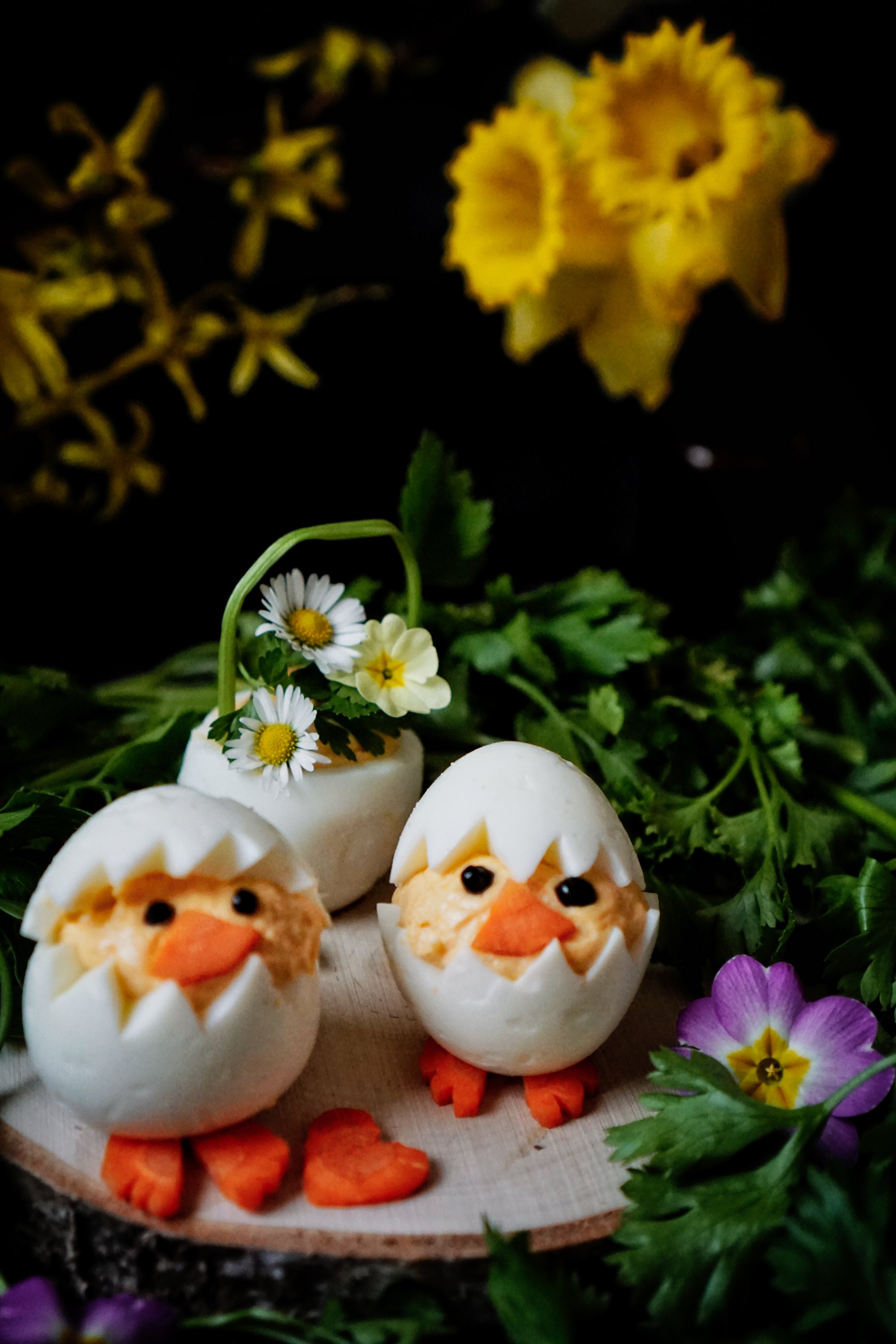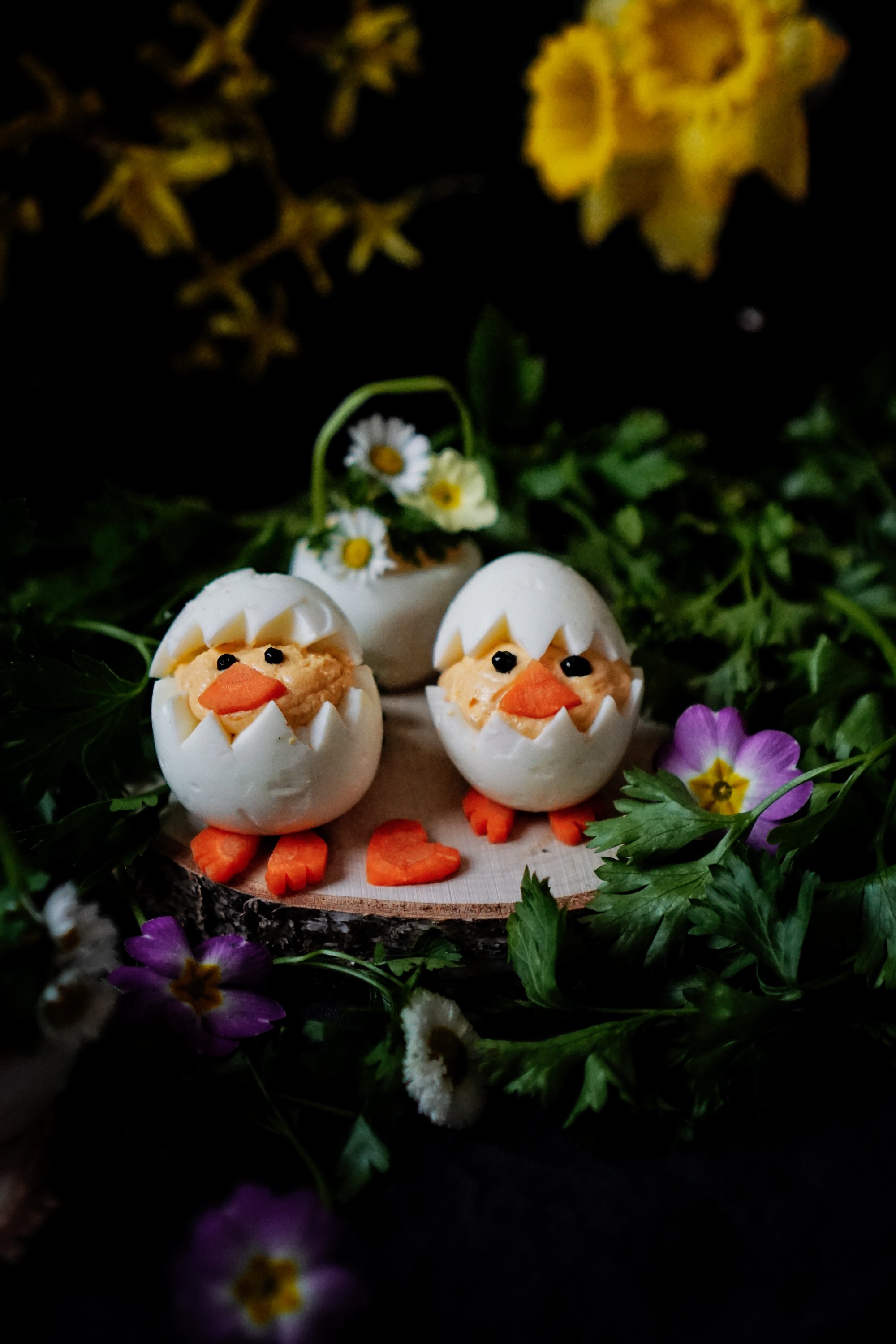 Plněná vejce jsou báječnou chuťovkou nejen na Velikonoce, kdy bývá přebytek barvených vajec. Navíc jsou velmi lahodné a efektní, s kuřátky zazáříte zajisté nejen u dětí.