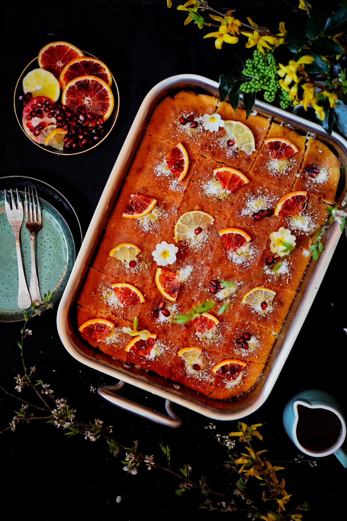 Dle libosti můžete dozdobit. V Turecku se na každý čtvereček sype strouhaný kokos nebo mleté pistáci, někdy také granátové jablko. Já ještě přidala kousky citrusů.