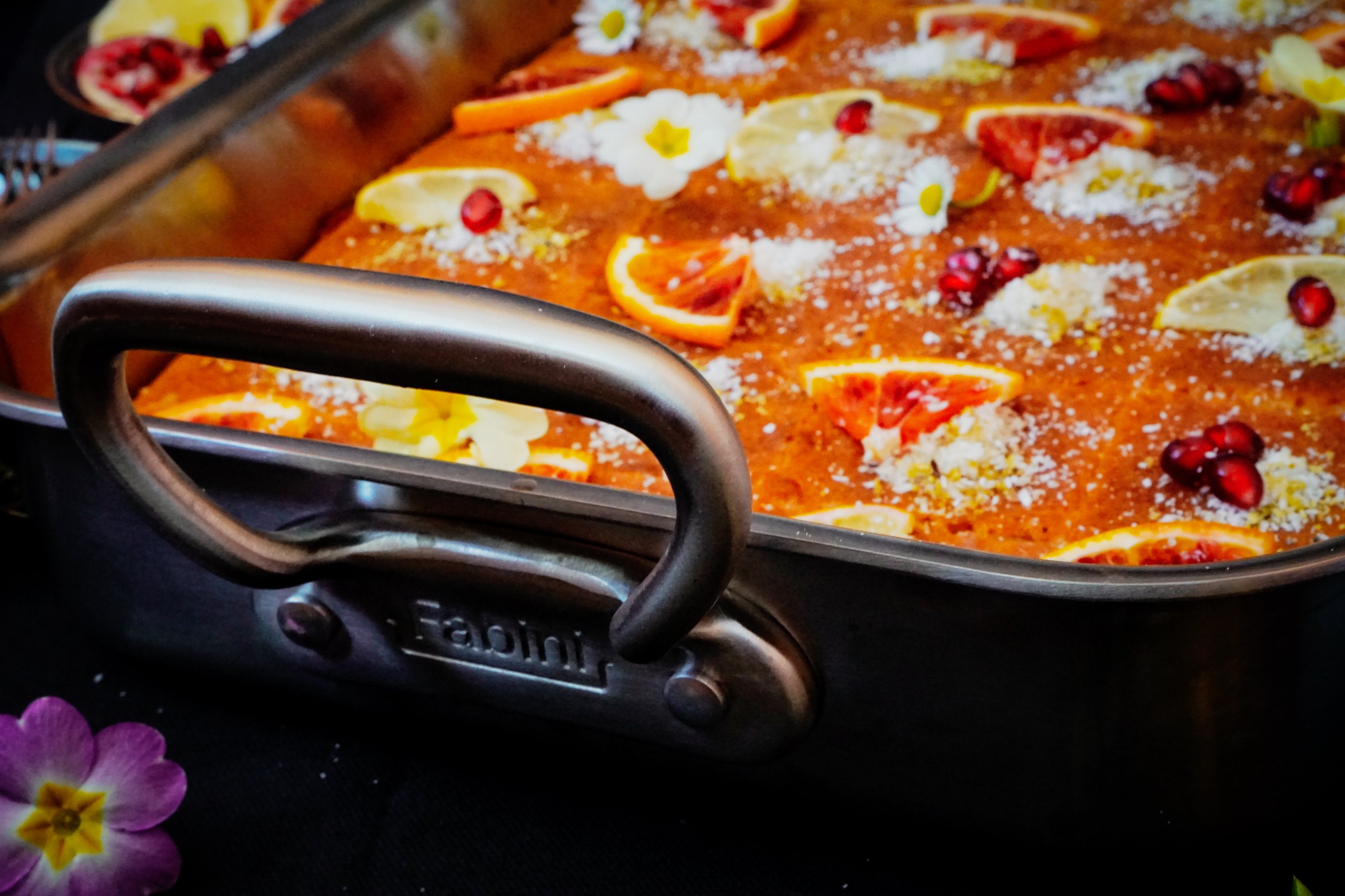 Revani je jeden z tradičních tureckých dezertů. V turecké kuchyni je naprosto běžný a velmi oblíbený. Já ho kdysi ochutnala u přátel a byla to láska na první ochutnání. Často se servíruje na stůl přímo v nádobě, v které se peče a na tohle je pekáč Fabini skvělý, revani v něm můžete rovnou servírovat i na slavnostní stůl a dojem uděláte veliký.