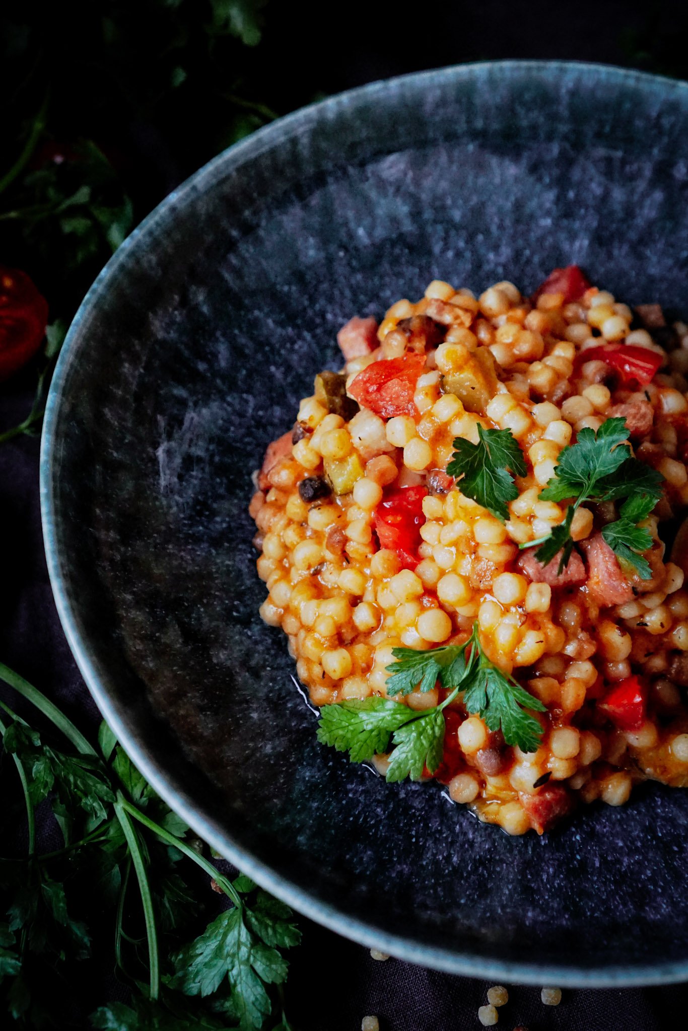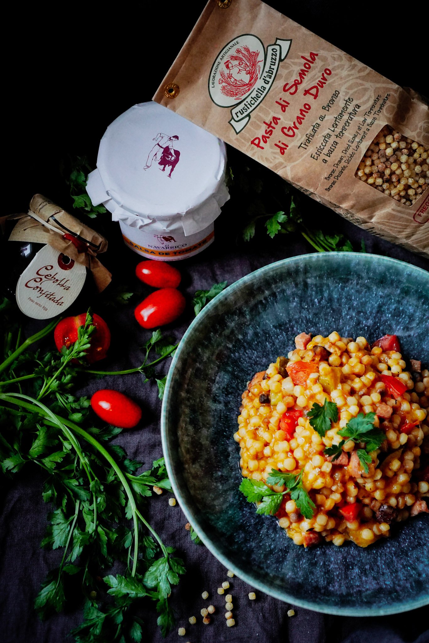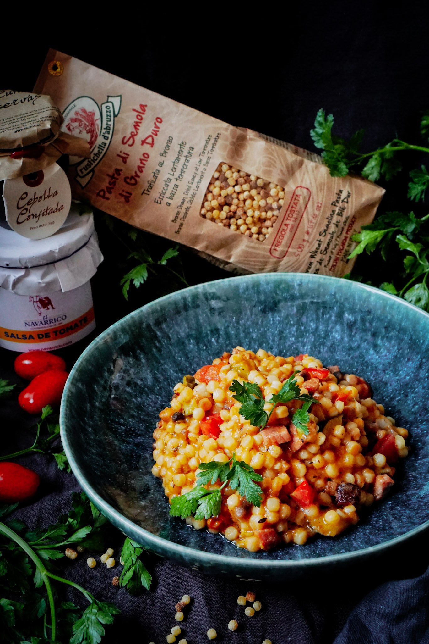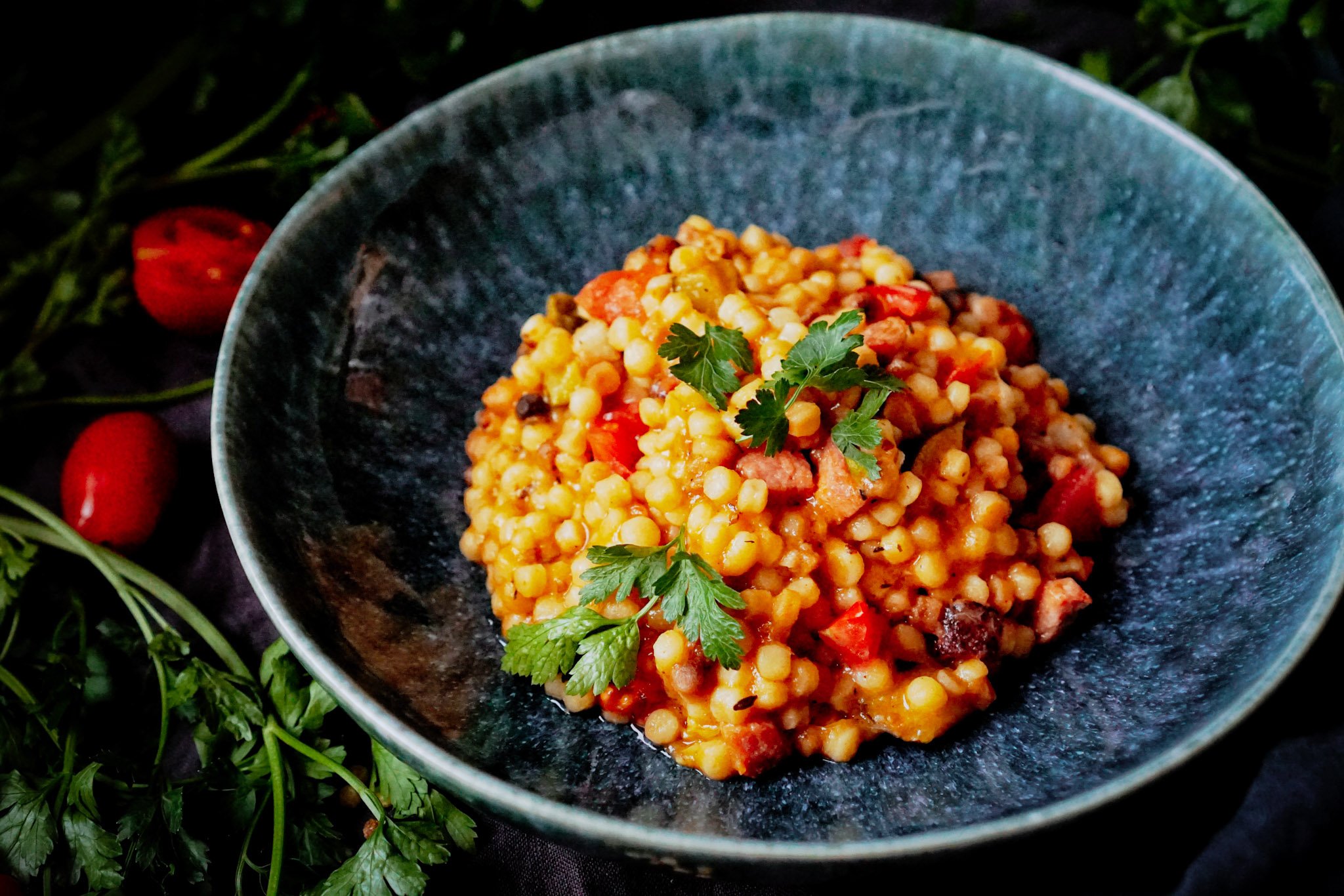 Fregola má velmi široké využití. Hodí se např. do salátů, polévek, jako příloha i samotný pokrm. Na blogu už najdete z fregoly salát, tentokrát jsem ji připravila na způsob italského risotta, ale na španělský způsob, se zeleninou a uzeninou. Uzeninu můžete buď vynechat, pokud chcete vegetariánské jídlo, nebo zaměnit za mořské plody, krevety tu budou dokonalé.