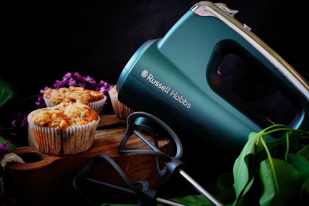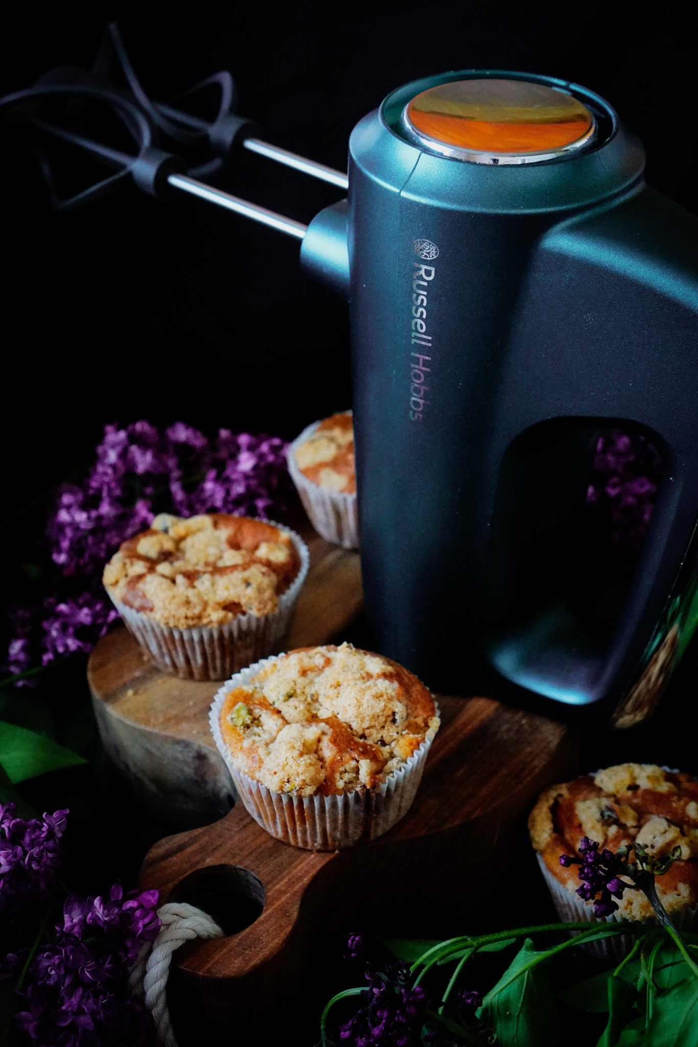 Muffiny jsem připravovala v milé spolupráci s Russell hobbs a jejich ručním šlehačem s netypicky tvarovanými metlami, které mě na první pohled zaujaly. Oproti klasickému tvaru mi tekuté věci zprvu při šlehání cákaly, ale hned jsem přišla na grif, kdy je vše v pohodě a jsem tuze spokojena. Navíc rychlost našlehání je úžasná!