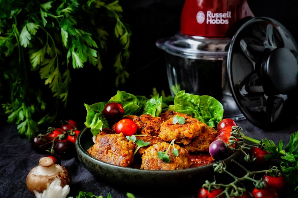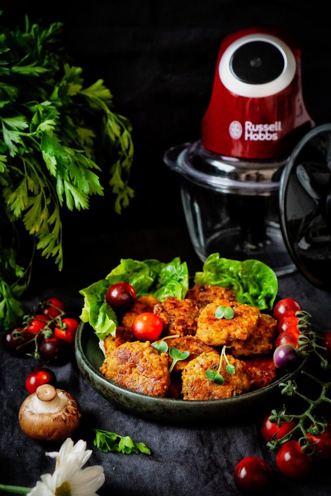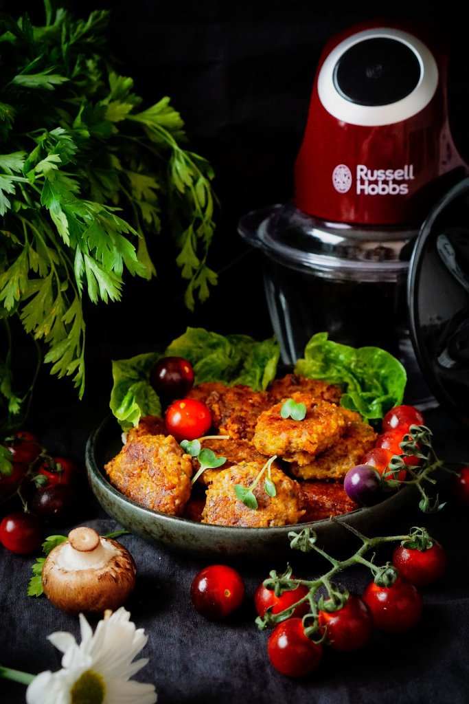 Na jemné nasekání žampionů i jemňoučkou kukuřičnou strouhanku mi pomohl sekáček Desire od Russell hobbs. Klidně v něm můžete i „nastrouhat“ resp. na jemno nasekat cuketu a také maso, namísto mlínku. Třeba maso na tatarák sekám jen v tomto sekáčku, i mleté zvládne parádně. Praktická skleněná nádoba se navíc skvěle čistí. Na strouhanku je skvělý i Nutri Boost od Russell hobbs.