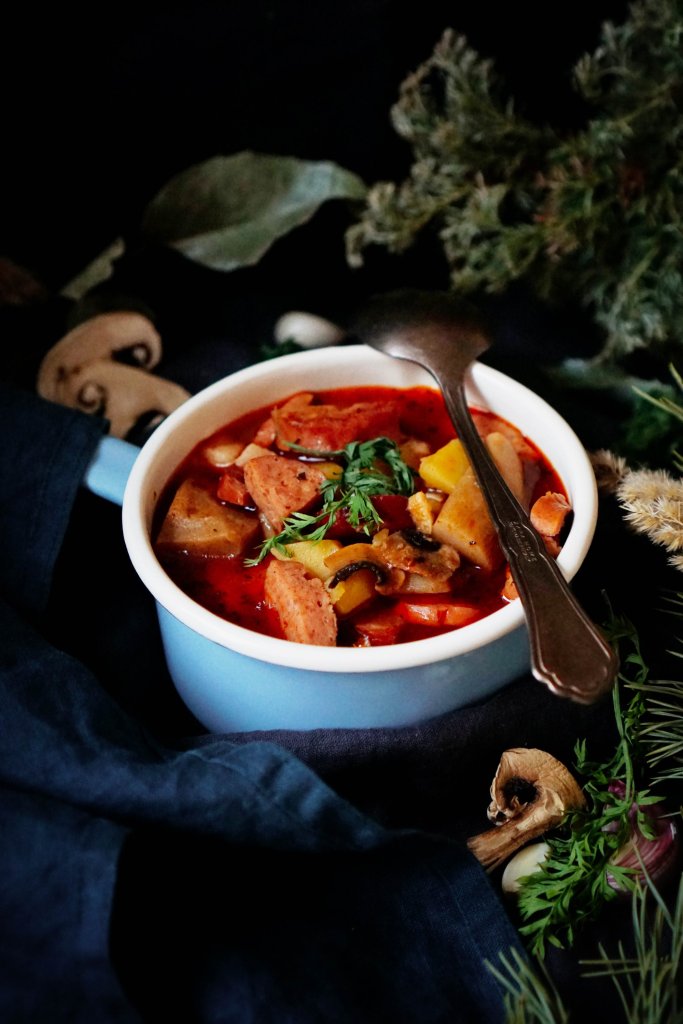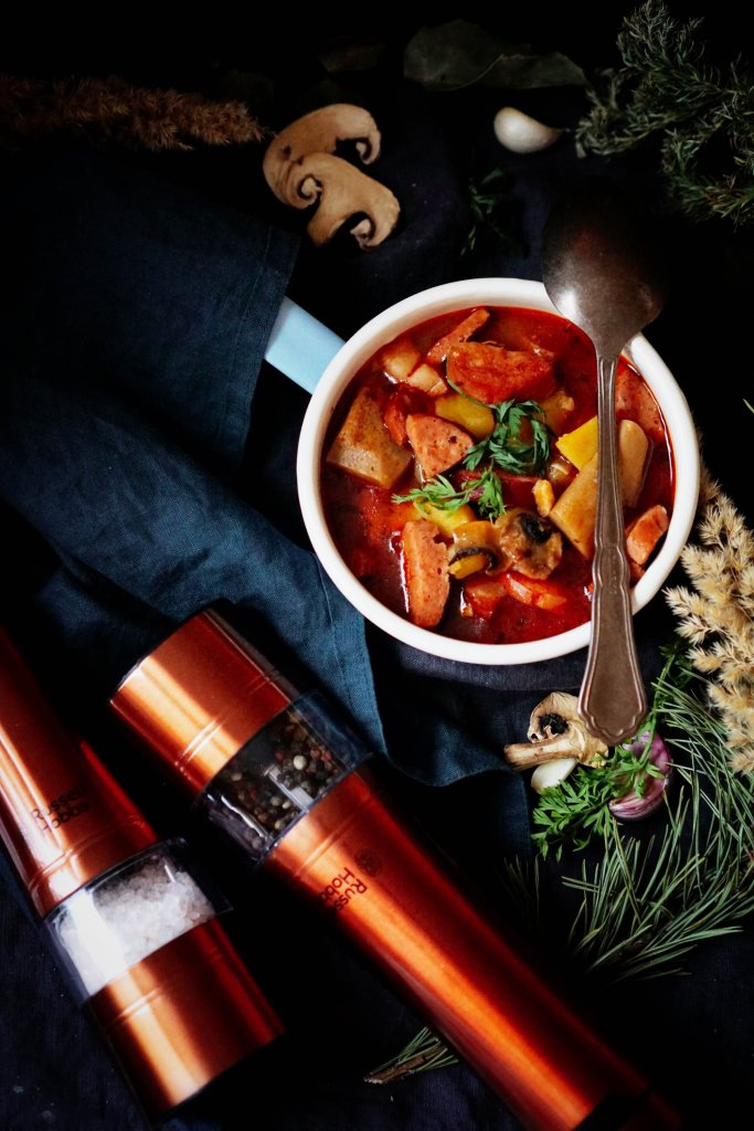 Buřtguláš je sice trochu kontroverzní jídlo, ale pokud použijete kvalitní suroviny, a to platí hlavně u špekáčků, je to moc dobré jídlo. My jsme doma hodně houbový, takže i buřtguláš vylepšuji o hnědé žampiony, ale pokud chcete, klidně je vynechte. Mletou papriku používám takřka do všeho jen uzenou, vyhovuje mi její výraznější chuť, pokud ale máte raději sladkou, klidně dejte tu, a nebo v kombinaci s pálivou.