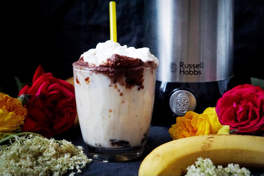 K mixování jsem využila NutriBoost od Russell hobbs, který mléko zároveň i paradně našlehá a který dokonale připraví cokoliv, ať už těsto na palačinky, strouhanku nebo právě koktejly a smoothie, které se díky velkému množství nádob a různých víček dají vzít kamkoliv sebou.