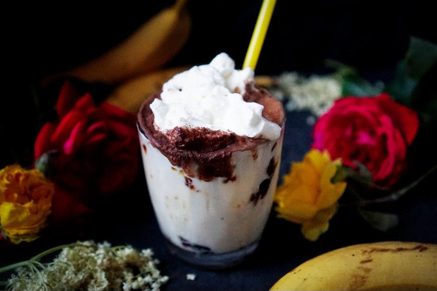Našlehané banánové mléko zkombinovat s kávou? Proč ne. Vznikne výborný kávový koktejl, který vás zaručeně dostane. Podle chuti si jej můžete ještě doladit skořicí, kakaem, šlehačkou, vanilkou, karamelem nebo třeba čokoládou. Karamel nebo čokoládu také můžete nalít po obvodu dovnitř skleničky.