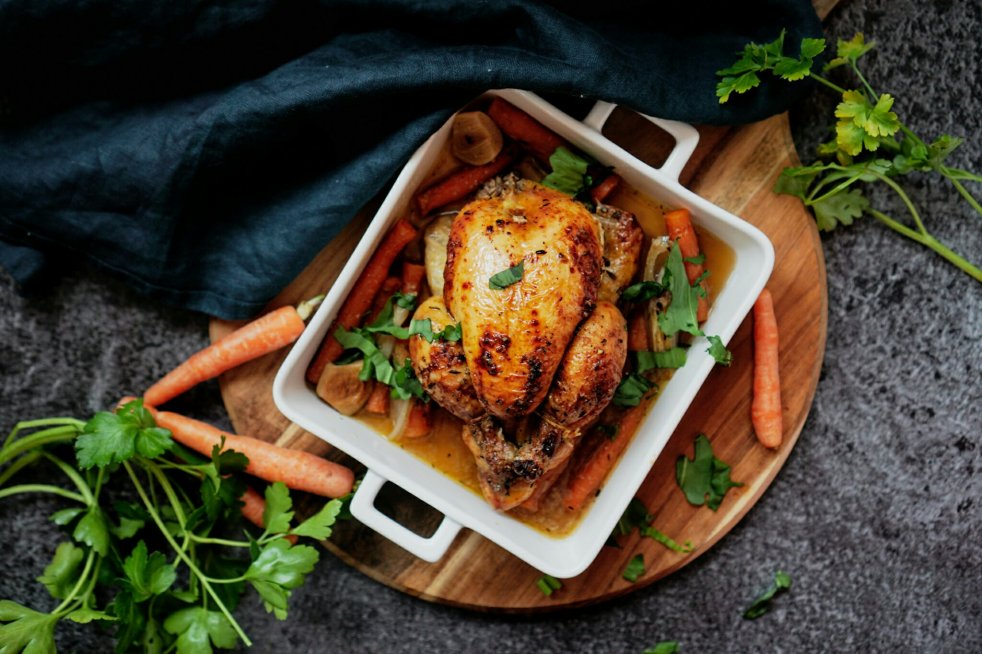 Jarní francouzské mini kuře s mrkvičkami na víně