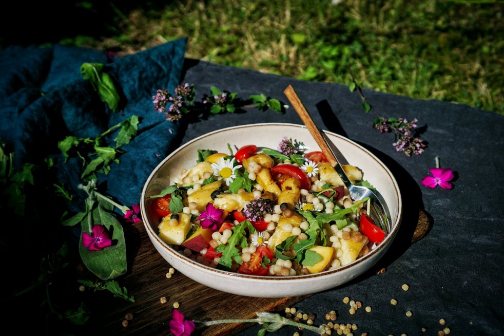 Letní salát z těstovin Fregola sarda s grilovaným Halloumi